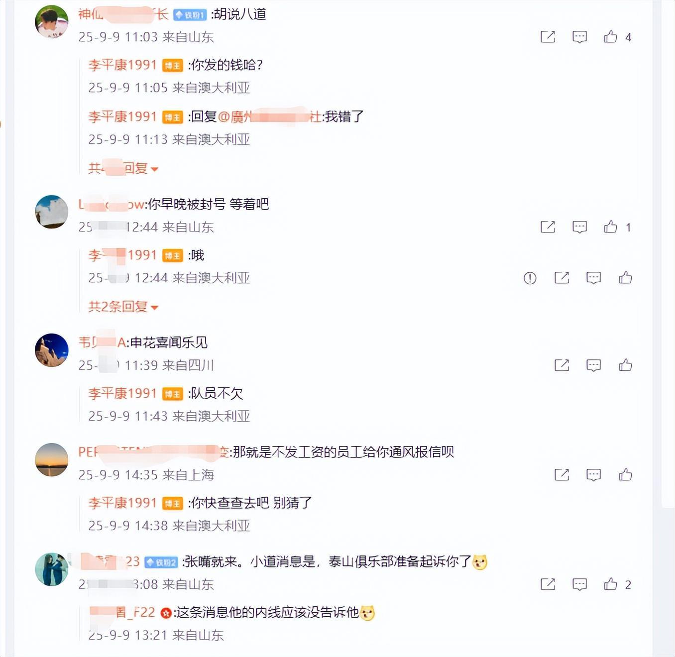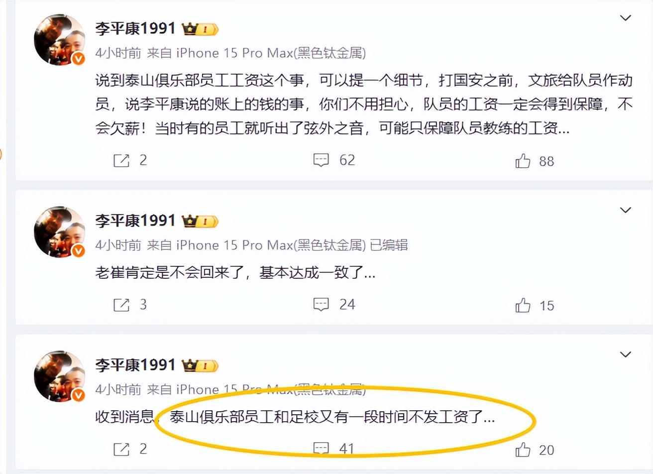就在这个关键时刻,自媒体李平康又一次的站了出来,拿着模棱两可的泰山员工工资说事。一会说“俱乐部员工和足校有一段时不发工资了”,一会又说“打国安之前,文旅给球员提士气的时候提到了李平康”,李平康还真把自己当个人物了。