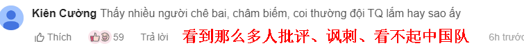 还有球迷妄自菲薄地表示,以前没怎么看过中国队的比赛,但现在看完才发现,越南队现在还不够资格站在亚洲这个舞台上(下图)。