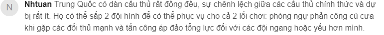 这位叫MK的球迷暗讽越南队道:必须承认,中国队在这场比赛中表现非常出色,能够在恰当的时机刚柔并济。某些球队能够闯入半决赛,其实已经超出了预期。只有主教练和一部分球迷有些过于乐观和不切实际,才刚取得这点成绩,就觉得自己已经达到亚洲一流水平,可以压制所有对手(上图)。